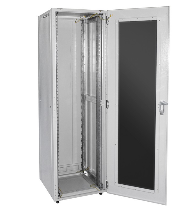 СЕРВЕРНА ШАФА С-42U-06-06-ДП-ПГ-1 напоьна призначена для розміщення 19 ” активного мережного обладнання в офісних будівлях, ЦОД і промислових приміщеннях. Висота становить 42U, що дозволяє розміщувати достатню кількість обладнання граничної маси до 1000 кг. Усередині шафи знаходяться посилені стійки для зручного кріплення і регулювання по глибині різного мережевого обладнання. Для зручності монтажу бічні стінки можна зняти і монтувати з чотирьох сторін. Після закінчення монтажу стінки кріпляться за допомогою петель і фіксуються замком. Навантаження розподіляється по конструктиву шафи. Вентиляція здійснюється за допомогою спеціально передбачених отворів на бічних панелях шафи. Можливе додаткове встановлення блоків вентиляторів в верхню і нижню стінку. Для зняття статичної напруги всередині шафи передбачено наявність клем заземлення на корпусі і дверях. Доставка телеком шафи здійснюється в розібраному вигляді. Для збірки шафи скористайтеся інструкцією у вкладенні.