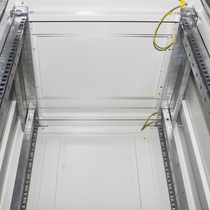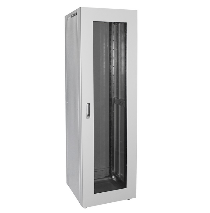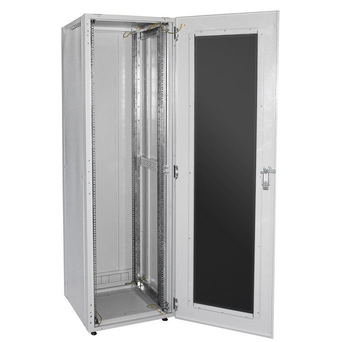 СЕРВЕРНА ШАФА С-42U-06-10-ДС-ПГ-1 напольна призначена для розміщення 19 ” активного мережного обладнання в офісних будівлях, ЦОД і промислових приміщеннях. Висота становить 42U, що дозволяє розміщувати достатню кількість обладнання граничної маси до 1000 кг. Усередині шафи знаходяться посилені стійки для зручного кріплення і регулювання по глибині різного мережевого обладнання. Для зручності монтажу бічні стінки можна зняти і монтувати з чотирьох сторін. Після закінчення монтажу стінки кріпляться за допомогою петель і фіксуються замком. Навантаження розподіляється по конструктиву шафи. Вентиляція здійснюється за допомогою спеціально передбачених отворів на бічних панелях шафи. Можливе додаткове встановлення блоків вентиляторів в верхню і нижню стінку. Для зняття статичної напруги всередині шафи передбачено наявність клем заземлення на корпусі і дверях. Доставка телеком шафи здійснюється в розібраному вигляді. Для збірки шафи скористайтеся інструкцією у вкладенні.
