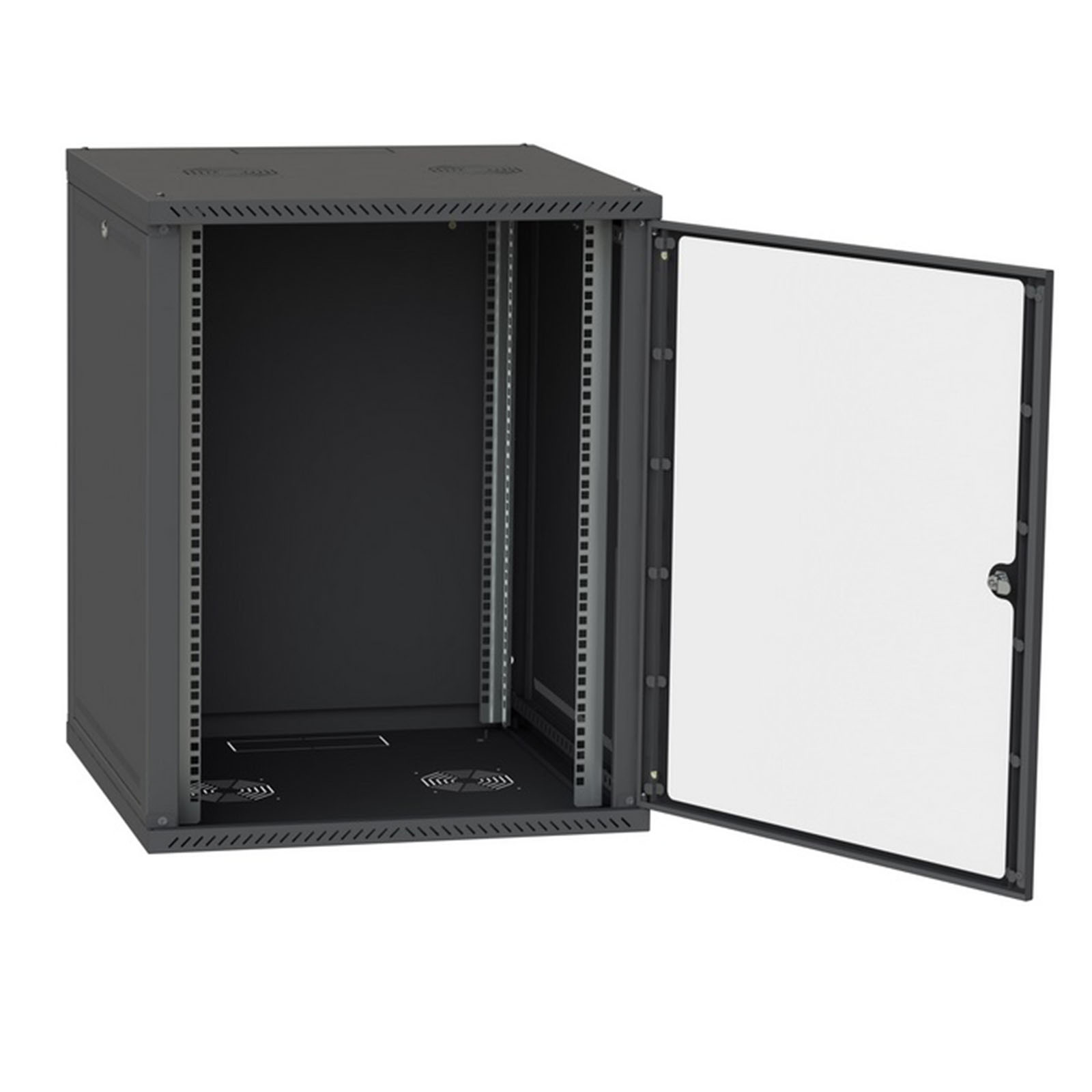 СЕРВЕРНА ШАФА Настінна СН-18U-060-060-ДС скло, чорна — це оптимальне рішення для організації серверних систем у невеликих приміщеннях. Завдяки розбірній конструкції шафа легко збирається за 10–15 хвилин без використання спеціального інструменту. Виготовлена з листової сталі, покриття — порошково-полімерне (чорний колір RAL9005).